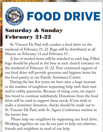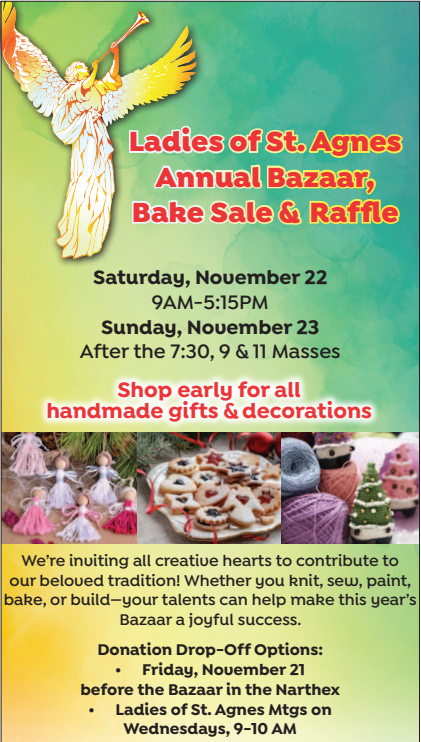 St. Agnes Parish proclaims and witnesses to all the love and Good News of Jesus Christ.